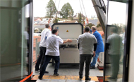 Im Zuge der geplanten Einführung des Yamaha SMD Bestückungsautomaten gestalten wir die Produktion um. Das neue Produktionslayout berücksichtigt den Parallelbetrieb der bisherigen Automaten mit dem neuen Automaten. Um die Materialflüsse zusätzlich zu optimieren, war ein Umzug der Selektiv-Lötanlage über ein Stockwerk erforderlich. Eindrücklich, wie die Maschine vom Kranen übernommen wurde.